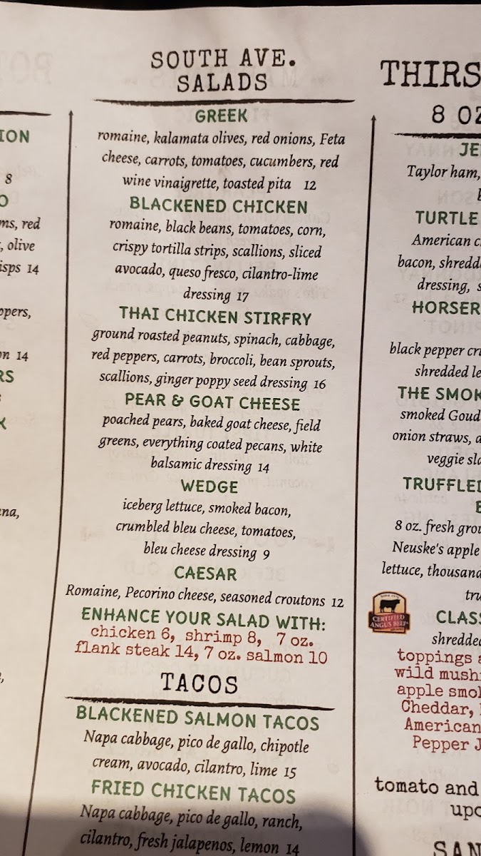 poached pears, baked goat cheese, field greens, everything coated pecans, white balsamic dressing